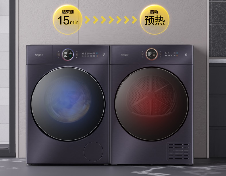 智能更进一步,W7·大师系列洗烘套装创新洗烘联动功能,在洗涤程序结束前15分钟,干衣机自动选择与洗涤程序相适配的烘干程序智能开启预热,简化操作步骤,让生活更便捷。